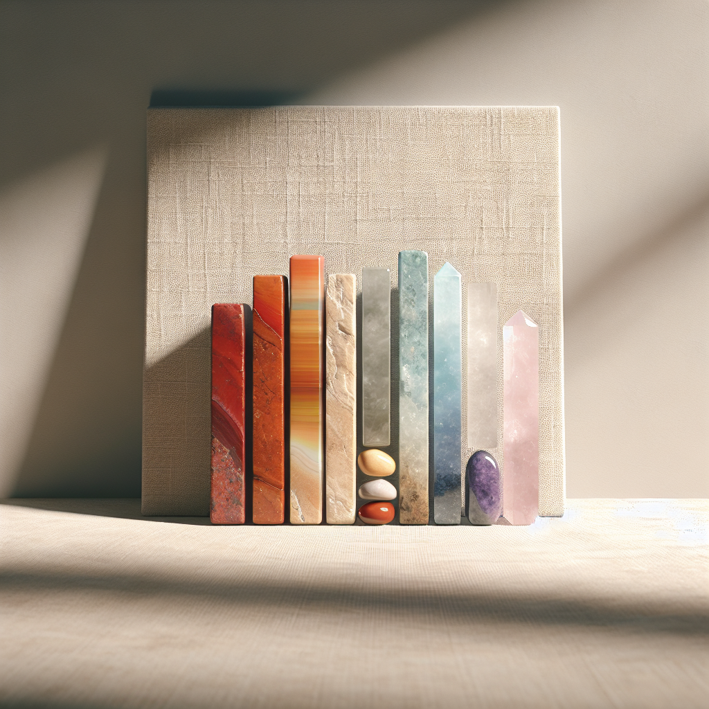 - Fatigue diffuse: jaspe rouge (vitalité), hématite (structure), cristal de roche (clarification). Marchez, buvez de l'eau, posez des limites.